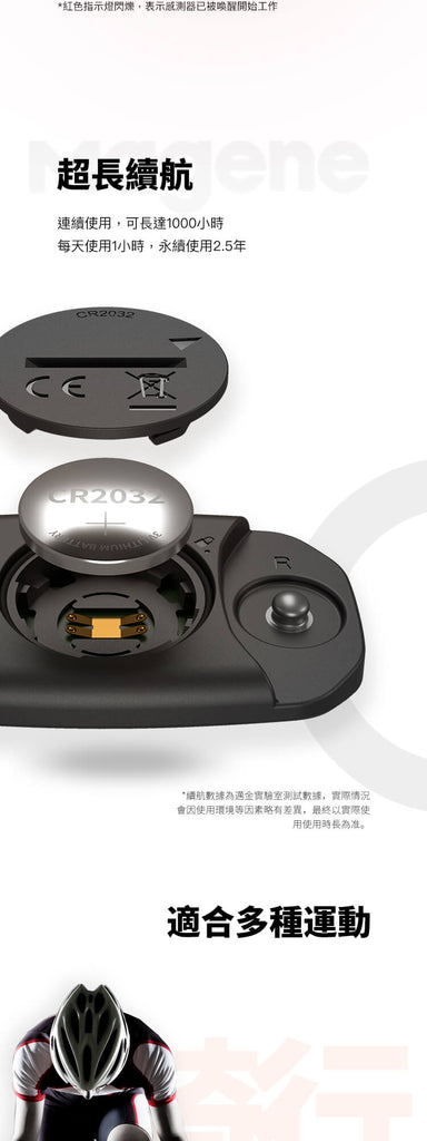 - 胸帶清洗:清水或洗劑沖洗,不可機洗及搓洗續航時長:1000h(受溫度等使用條件影響)