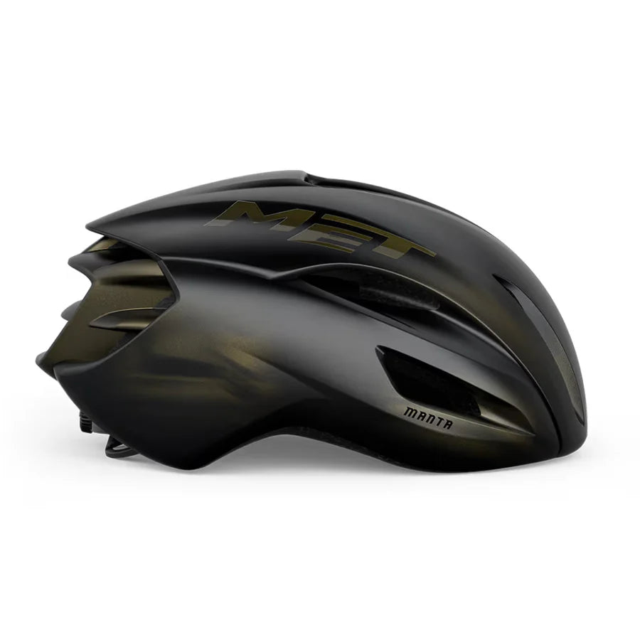 塔德伊·波加爾用實力證明,冠軍的真諦在於化不可能為可能──他日復一日地提升自我,懷抱夢想,並激勵他人勇敢追夢。黑色特別版正是對當代自行車運動黃金時代及其無可爭議的領導者Tadej Pogačar的致敬,也是對自行車運動天賦和奉獻精神的頌揚。在這個特別版中,Manta 的空氣動力學設計更添大膽氣勢。黑色象徵著優雅與權威,而精緻的金色紋理則為其增添光彩,令人不禁想起他輝煌的賽季。